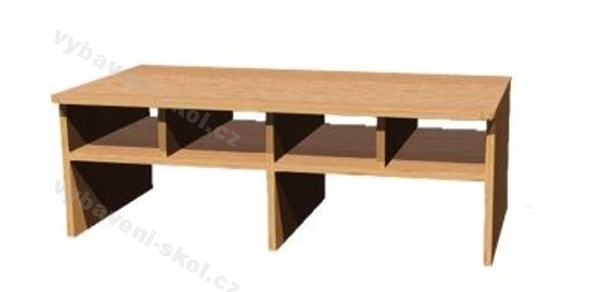 Kvalitní a praktická šatní lavice do interiéru dětských šaten. Lavice pro dvě až pět dětí zajistí komfort dětí při převlékání a přehlednost v umístění obuvi díky oddělených boxů jednotlivých míst. Korpus lavice je standardně vyráběn ve dvou dezénech (možnost výběru) lamino desek o síle 18 mm a chráněn 0,5 až 2 mm ABS hranou s výběrem barevného provedení. Počet oddílů je možno zvolit z naší nabídky.
