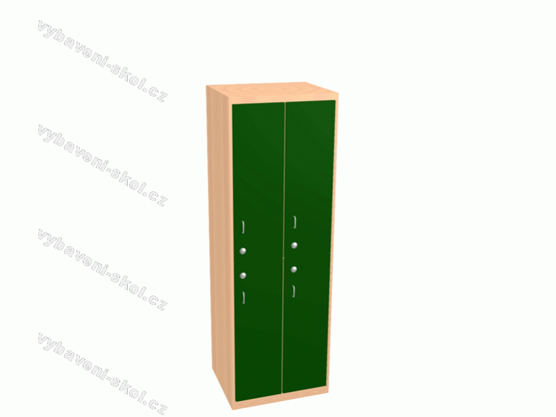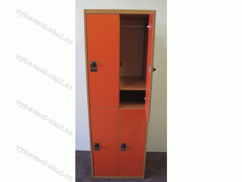 Dřevěná šatní skříň se 4 úložnými částmi je vyráběná v několika barevných variantách (viz vzorník). Kolíkově spojená konstrukce a laminované desky o dvojité síle (36 mm, půda a dno) zaručují její stabilitu. Namáhané plochy skříně jsou opatřené hranami ABS v síle 2 mm. Zadní část v bílém provedení. Spodní část skříně je ustavena na rektifikační mechanismus, který umožňuje dorovnat nerovnou podlahu až o 2 cm. Skříň s rozměry 180x60x50 cm (V x Š x H) je vybavená kvalitním kováním značky BLUM s doživotní zárukou, policí a háčkem. Typ zámků lze volit.