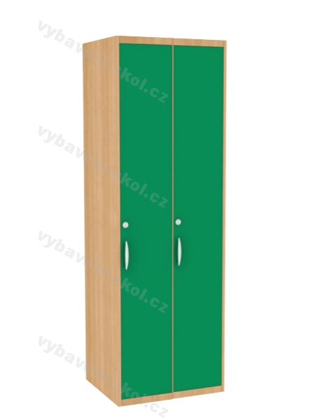Dvojitá šatní skříň je vyrobená ze dřeva, konstruovaná kolíkovou metodou, která zaručuje její pevnost. Půda a dno jsou vyrobeny z lamina o dvojité síle (36 mm), namáhané plochy jsou před poškozením chráněny ABS hranami (v tloušťce 2 mm). Šatní skříň je opatřená rektifikací pro dorovnání nerovností podlah o 2 cm a kvalitním kováním s doživotní zárukou (značka BLUM). Záda v bílém provedení. Rozměry 180x60x50 cm (V x Š x H). Vnitřní prostor je vybavený policí, šatní tyčí a háčkem. Volit lze typ zámku a barvu dveří.