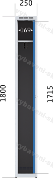 Skříň šatní s dvouplášťovými dveřmi, šíře odd. 250 mm, počet odd. - 1, v oddělení 270 mm od víka police, tyč s plastovými háčky. Rozměr: 180x25x50 cm (VxŠxH).