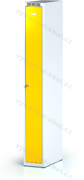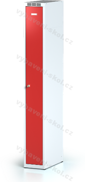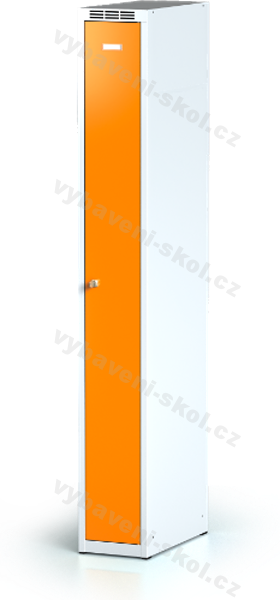 Skříň šatní s jednoplášťovými dveřmi, šíře odd. 250 mm, počet odd. - 1, v odd. 270 mm od víka police, tyč s plastovými háčky. Rozměr: 180x25x50 cm (VxŠxH).