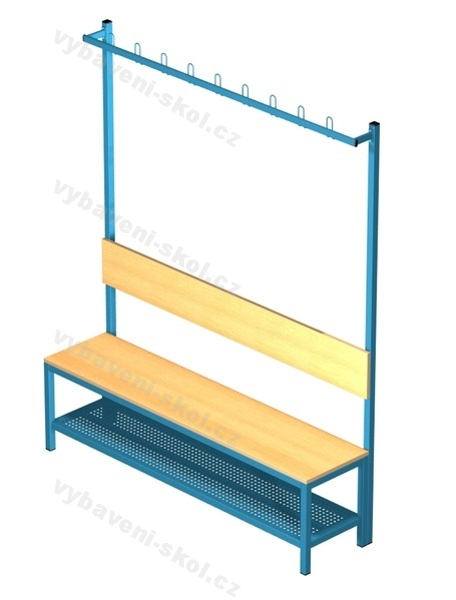 Šatní stěna je vyrobena z jäklových profilů s povrchovou úpravou komaxit, sedací plocha a opěradlo jsou vyrobeny z laminátového dřevotřískového materiálu buk o síle 18 mm s ABS hranou. Rošt na boty je z perforovaného plechu, na odkládání šatstva jsou bezpečnostní dvojháčky. Výška sezení 42 cm, hloubka sedu 35 cm. Počet háčků 6.