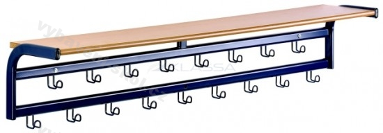 Šatní věšák s odkládací plochou délka 155 cm, 17 háčků. Rozměr: 155x29x26cm (Š x V x H).