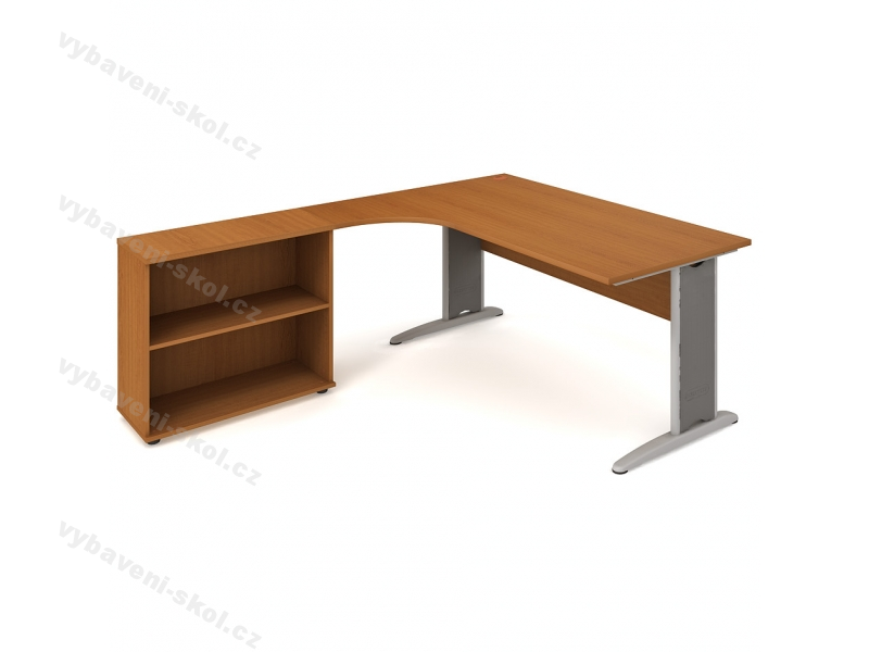 Nadčasový design nabízí sestava Cross CE 1800 H P s ergonomicky tvarovanou pracovní deskou vykrojenou do oblouku o síle 25 mm, která je opatřena ochrannou hranou ABS o síle 2 mm. Tato sestava je doplněna o otevřenou skříň, která volně navazuje na pracovní desku. Na horní desce je umístěna praktická průchodka, pomocí které lze svést kabely pod desku a uchytit je plastovými držáky. Kabely lze dále vést v kovové noze stolu s plastovým krytem, který zaručuje, že kabely nebudou viditelné. Plastová výplň je barvy antracitu, kovové nohy lze vybrat z více designů i odstínů. Nohy jsou opatřeny rektifikací, díky které lze dorovnat stůl až o 15 mm, dále jsou nohy propojeny dřevotřískovou deskou silnou 18 mm, která zajišťuje stabilitu stolu. Jednoduchý spojovací systém umožňuje kombinovat stůl s jinými nábytkovými prvky. Spojovací systém je automaticky součástí každého prvku včetně přehledného návodu. Barevné provedení dřevotřísky je možné vybrat ze vzorníku.
