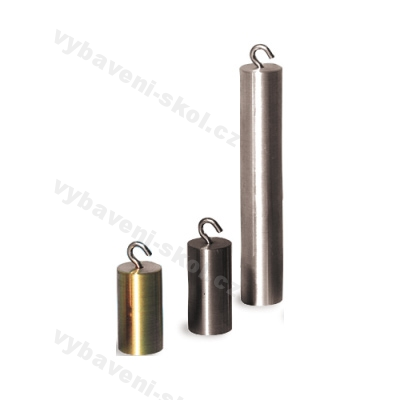 Sada 3 válců stejné hmotnosti, ale různého objemu. Válce se závěsným očkem o hmotnosti 100 g. Z hliníku, železa a mosazi.