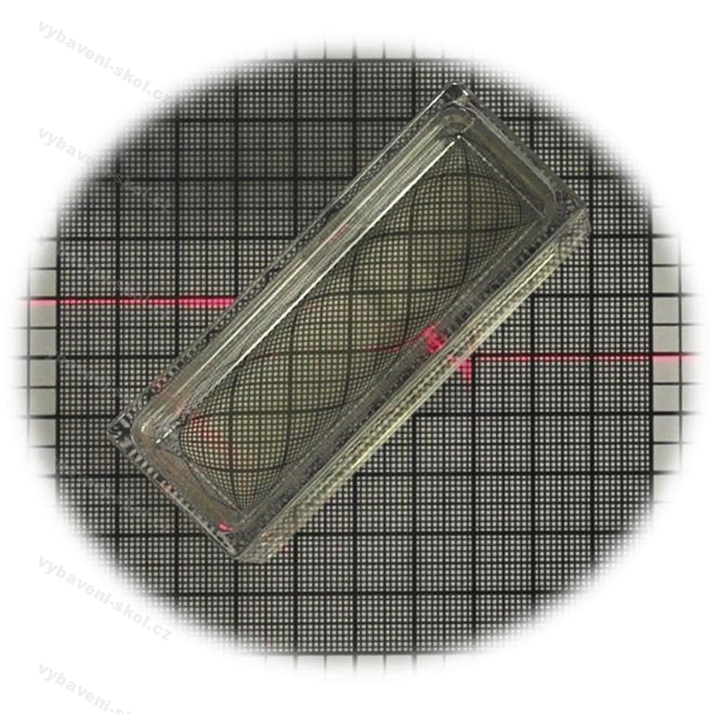 Skleněná kyveta, 40 x 80 x 30 mm. 90 g.