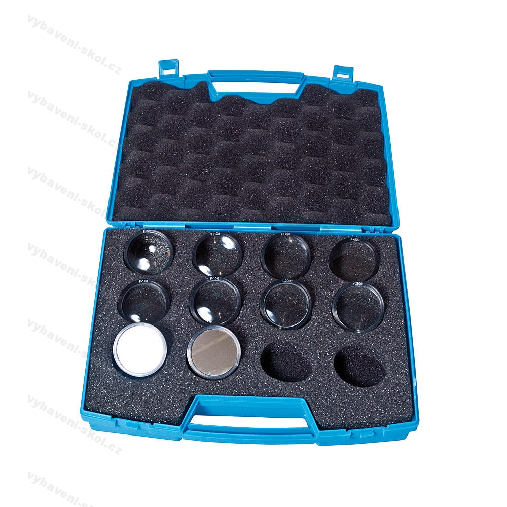 Sada kvalitních skleněných čoček, zrcátek a clon.