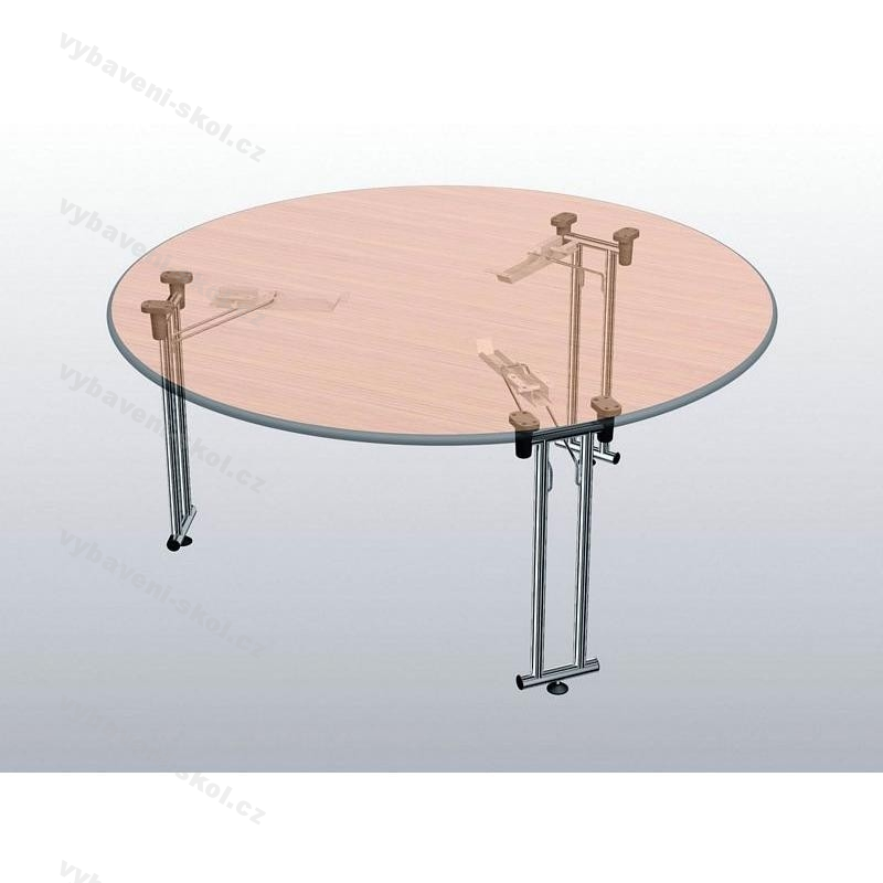 Stolová konstrukce umožňuje velmi snadné skladování a manipulaci se stoly díky sklopnému mechanismu, který je patentován. Bezpečné stohování stolů zajišťují plastové nosníky zabraňující poškrábání stolových desek. Nejmenší průměr 140 cm a největší 200 cm. Minimální tloušťka stolové desky je 16 mm. Kvalitní ocelové trubky konstrukce je možno zvolit v jiné barvě a to buď v chromu, stříbrné, RAL 9006, černé nebo jiné barvě.
