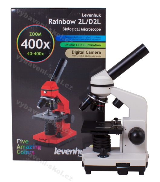 Mikroskopy Levenhuk Rainbow 2L nabízejí zvětšení 40x-400x, které je pro první dětské biologické výzkumy zcela dostačující.