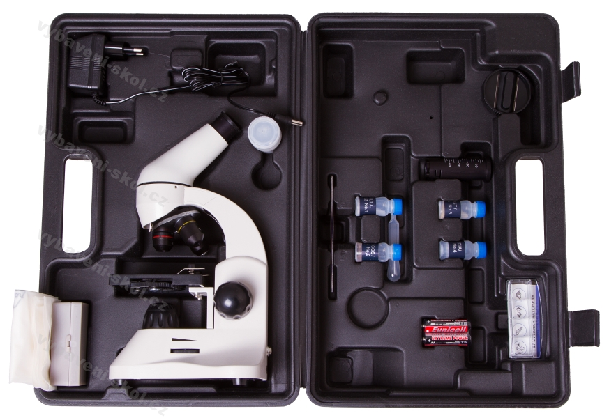 Mikroskop se dodává s praktickým plastovým kufříkem. Kufřík můžete použít k uložení mikroskopu tak, aby byl chráněn proti prachu, a k přepravě vašeho přístroje bez rizika mechanického poškození.