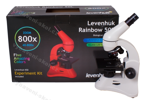 Každý model se dodává s experimentální sadou Levenhuk K50. Zkušení uživatelé ocení optiku nejvyšší kvality a špičkový výsledný obraz. Díky kombinovanému systému osvětlení jsou tyto mikroskopy vhodné ke zkoumání průhledných, neprůhledných i poloprůhledných preparátů. Mikroskopy Levenhuk Rainbow 50L mají lehké, ale spolehlivé plastové tělo.