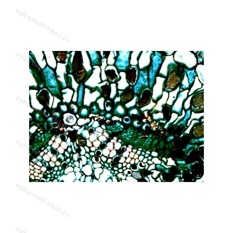 25 preparátů z tělovědy savců, zoologie a botaniky. Např. játra vepře, tenké střevo psa, ústní ústrojí včely medonosné, švába amerického, příčný řez stonku ibišku, řez kapraďorostu. V plastové krabici.