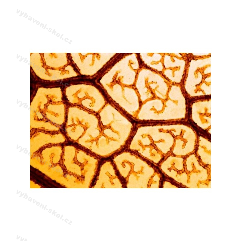 25 preparátů z tělovědy člověka, savců, zoologie a botaniky. Např. sítnice oka králíka, sperma člověka, celé buňky trepky při dělení, celá larva komára pisklavého, podélný řez kmene borovice. V plastové krabici.