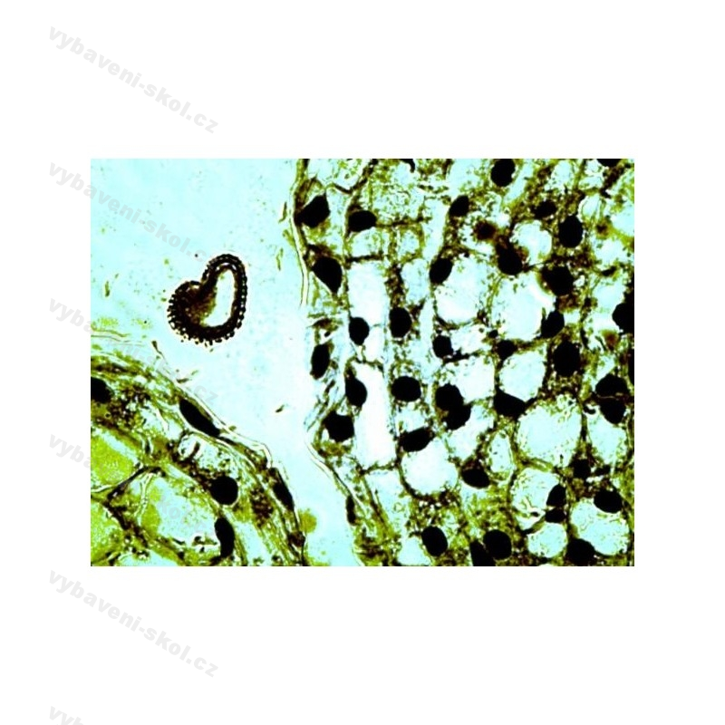 25 preparátů z tělovědy člověka a savců, zoologie a botaniky. Např. mozeček psa, ledvina potkana, blecha psí, červený roztoč, příčný řez lodyhy dýně, pyl borovice, senná bakterie, bakterie mléčného kvašení. V plastové krabici.