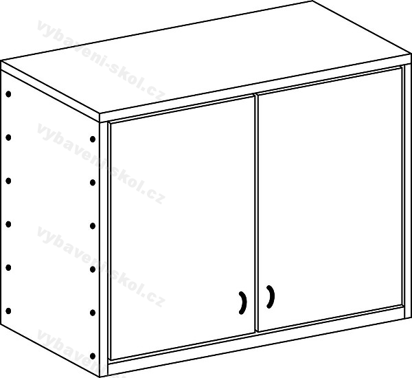 Skříňka bez soklu dvoudveřová se dvěma policemi. Rozměry: 80x57,5x40 cm (Š x V x H).