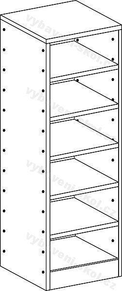 Skříň s pěti vloženými policemi. Rozměr: 40x124x40 cm (Š x V x H).