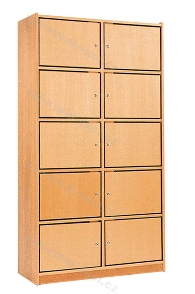 Skříň šatnová s uzamykatelnými dvířky (deset dvířek). Rozměr: 100x181x40 cm (Š x V x H).