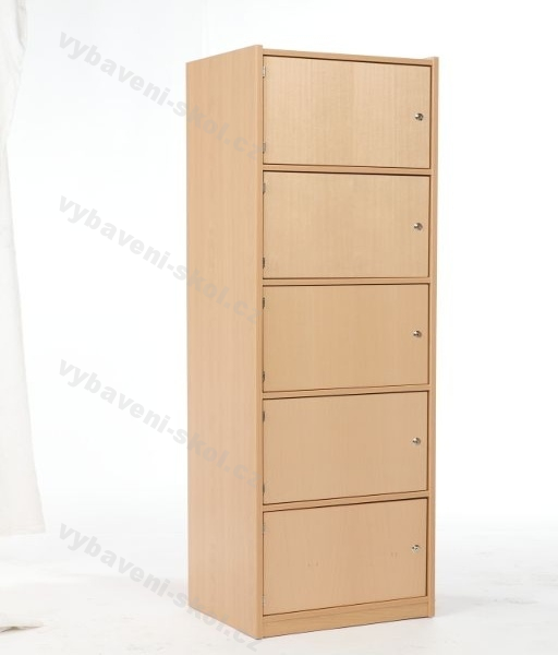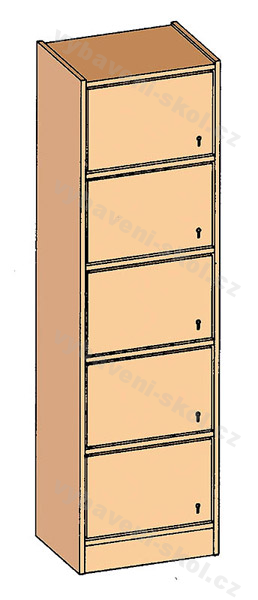 Skříňka šatnová s uzamykatelnými dvířky (pět dvířek). Rozměr: 51x180,6x40 cm (Š x V x H).