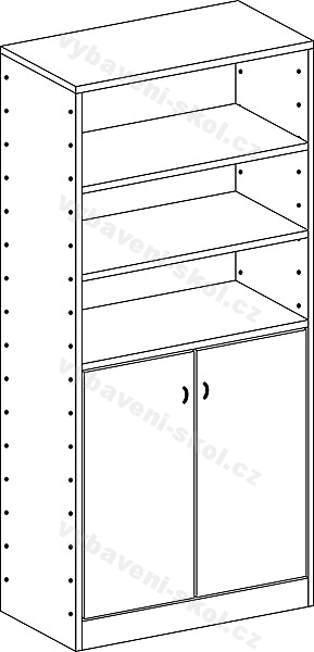 Skříň se čtyřmi policemi a dvojitými dvířky. Rozměr: 80x124x40 cm (Š x V x H).