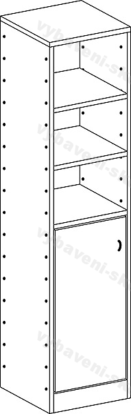 Skříň se čtyřmi policemi a jednoduchými dvířky. Rozměr: 40x164x40cm (Š x V x H).