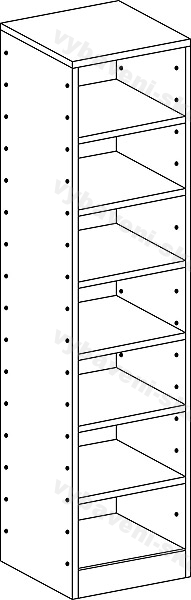 Skříň se šesti vloženými policemi. Rozměr: 40x164x40 cm (Š x V x H).