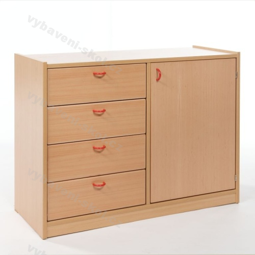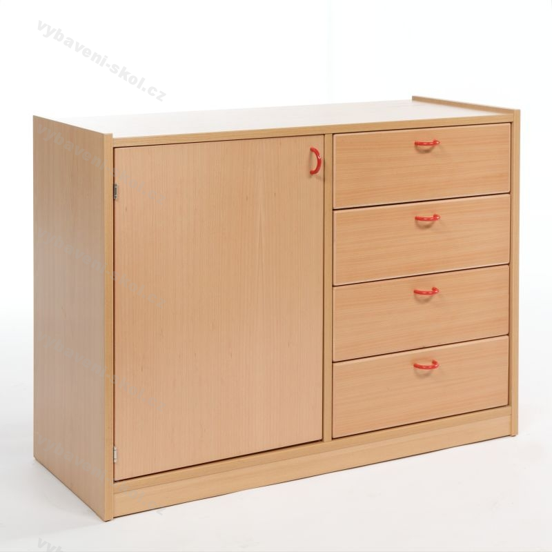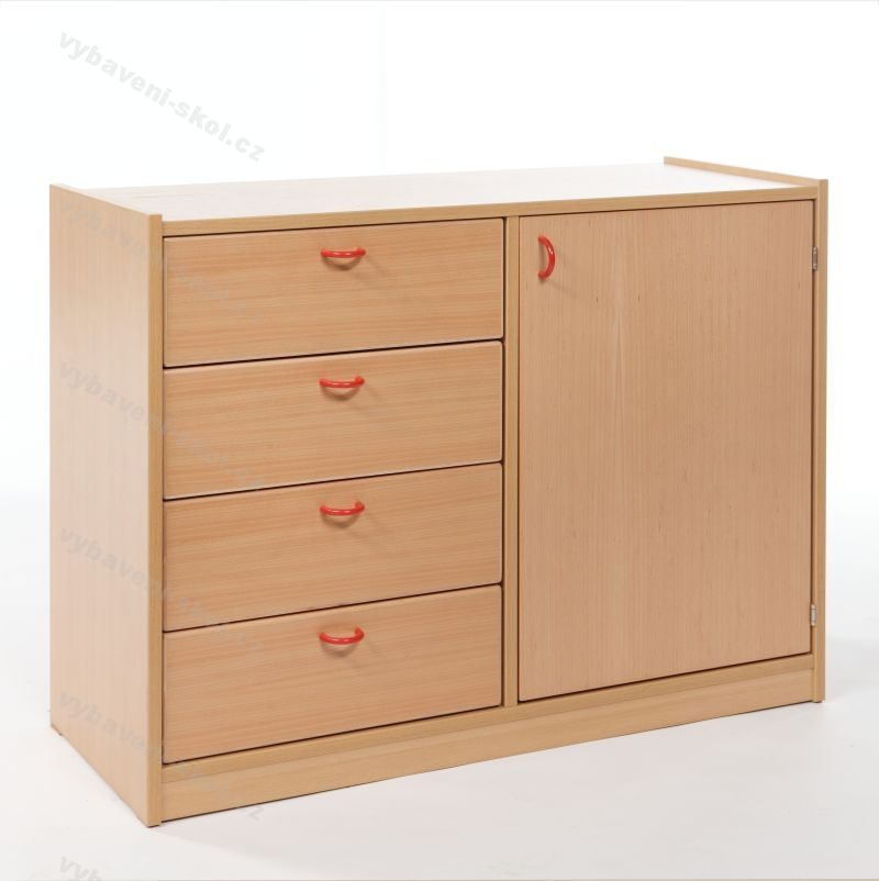Skříňka kombinovaná jednodveřová se zásuvkami (čtyři zásuvky). Rozměr: 100x75x40cm (Š x V x H).