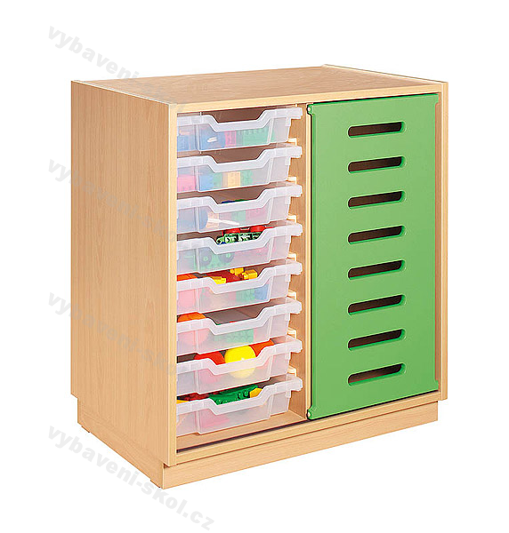 Praktický kombinovaný úložný prostor (osm zásuvek, dvě poličky) poskytuje nízká dvousloupcová dětská skříňka. Plastová dvířka i zásuvky nabízíme v několika barvách. Korpusy skříňky v dezénu přírodní buk jsou z oboustranně laminované dřevotřísky s výběrem dezénu o síle 18 mm. Před poškozením je chrání 2 mm ABS hrany.