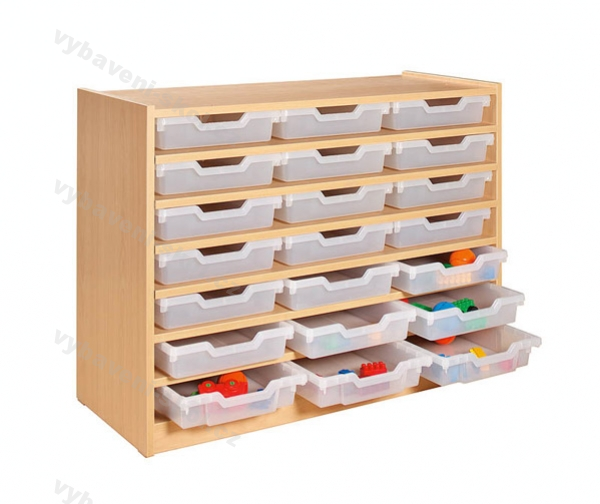 Praktická skříňka s 21 plastovými zásuvkami pro uložení dětských puzzle, pastelek, stavebnic. Korpusy má vyrobené z laminované dřevotřísky silné 18 mm v několika dezénech dle naší nabídky, opatřené 2 mm hranou ABS. Zásuvky lze objednat v několika barvách i barevných kombinacích (uvádějte do poznámky).