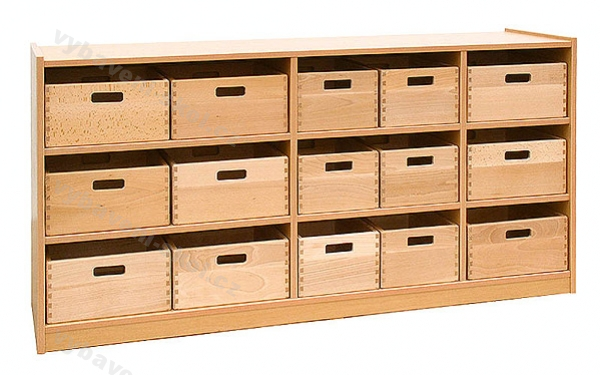 Skříňka s volnými zásuvkami (patnáct plných zásuvek). Rozměr: 150x75x40 cm (Š x V x H).