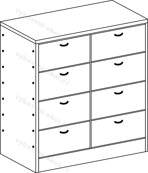 Skříňka se soklem s osmi zásuvkami. Rozměr: 80x82,6x40 cm (Š x V x H).
