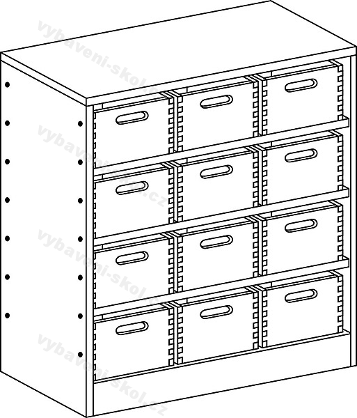 Skříňka se soklem se třemi policemi a dvanácti volnými zásuvkami. Rozměr: 80x82,6x40cm (Š x V x H).