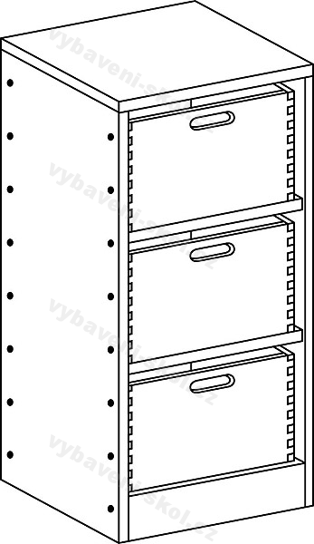 Skříňka se soklem s dvěma policemi a třemi volnými zásuvkami. Rozměr: 40x82,6x40 cm (Š x V x H).