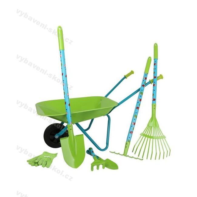 Hurá na zahradu! Mladí zahradkáři Vám rádi pomohou s touto velkou sadou zahradního nářadí. Stačí si nasadit rukavice a mohou začít motykou, hráběmi, rýčem, kolečkem a dalšími nástroji pomáhat a rozvíjet své zahradnické zkušenosti. Všechny díly jsou vyrobeny z vysoce kvalitního, jemně opracovaného kovu a díky svému dětskému designu a jarním barvám potěší každého malého zahrádkáře.