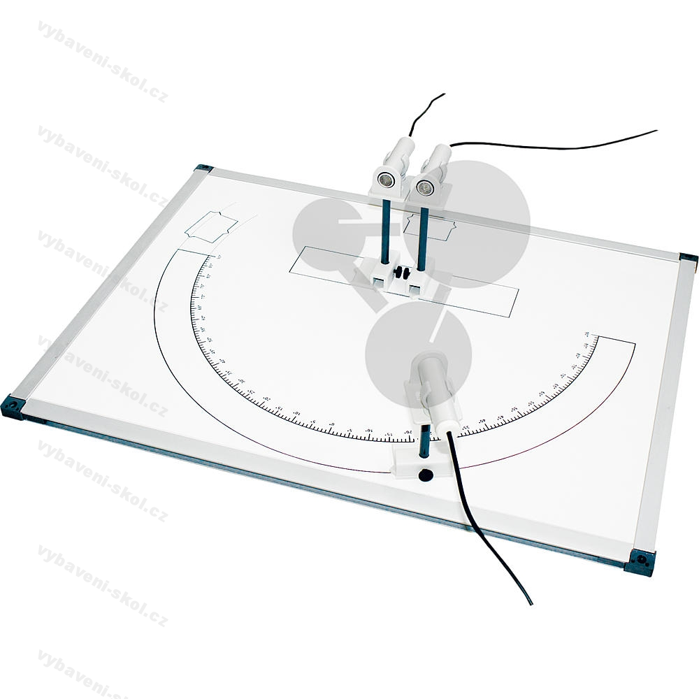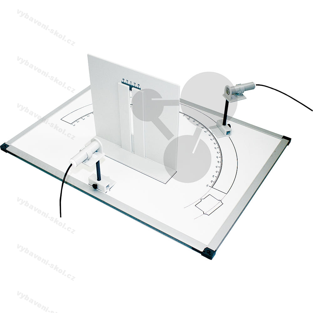 Pro pokusy na téma odraz, ohyb a interference. S bílou magnetickou tabulí.