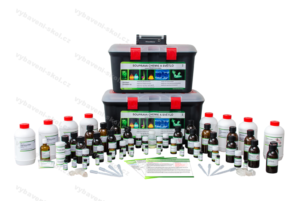 V soupravě Professional naleznete kompletní soubor těch nejatraktivnějších experimentů, které souvisejí s chemií a světlem a které spolehlivě nadchnou jak ty nejzvídavější žáky, tak i učitele samotné. Souprava obsahuje chemikálie ve velkém měřítku a poskytuje tak možnost velkého počtu opakování pokusů.