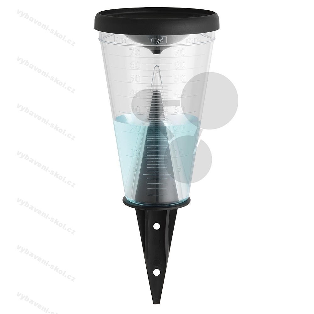 Srážkoměr z plastu s funkčním tvarem: velký průměr pro nejpřesnější výsledky měření a velmi dobrou odečitatelnost i při malých množstvích. Snímatelné víko snižuje odpařování. Přibalený držák umožňuje zapíchnutí do země nebo připevnění na tyč.