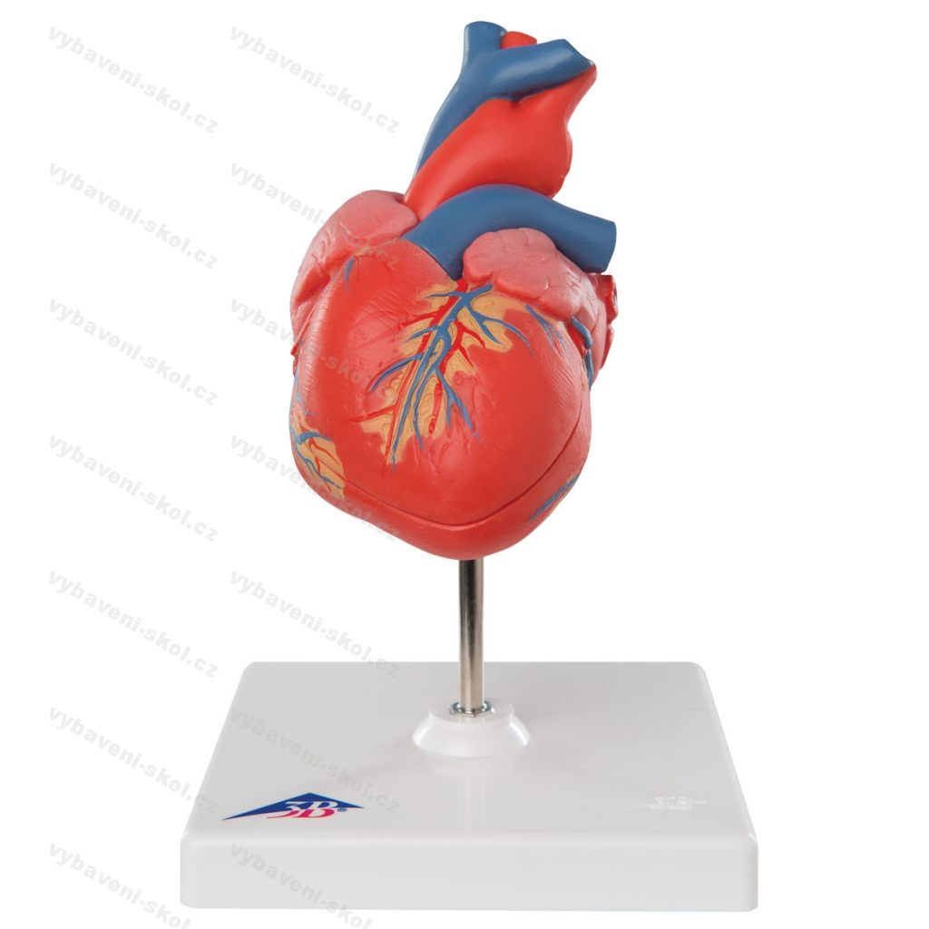 Klasický model, rozložitelný na dvě části. Komory, předsíně, žíly, aorta. Na stojanu. Špičková kvalita 3B Scientific. Velikost 19 x 12 x 12 cm, hmotnost 0,5 kg.