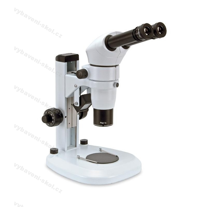 Binokulární komplet s paralelním optickým systémem a s velkým rozsahem ZOOMu 0,8x-8x. Stativ s makro i mikro zaostřováním a velmi kvalitním procházejícím i dopadajícím LED osvětlením. Obě světla mají oddělené zapínání i na sobě nezávislou plynulou regulaci intenzity. Mikroskop lze později jednoduše doplnit o trinojednotku pro připojení kamery nebo fotoaparátu. Profesionální stereoskopický mikroskop.