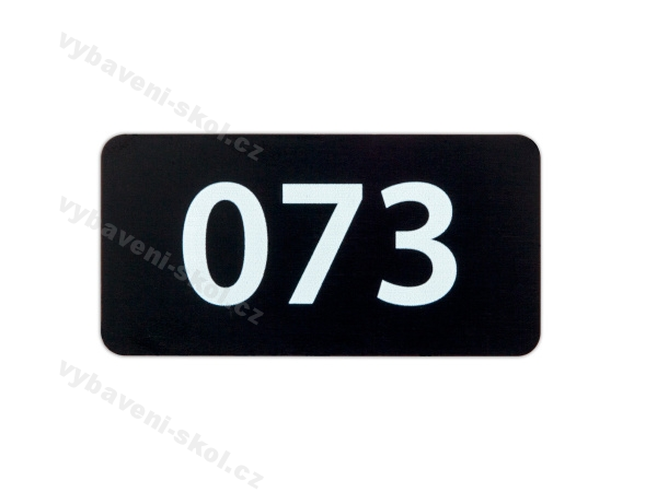 Samolepicí etiketa s vynikající odolností proti odtržení. Štítky je možné použít pro značení šatních skříněk, dveří, objektů, strojů atd. lze objednávat v sériích. Materiál: hliník 0,5 mm. Barva štítku: černá / barva vylaserovaného motivu (čísla): bílá.