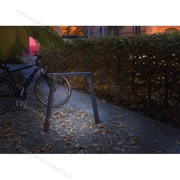 Stojan na kola řazení stojanů libovolné, je vhodný pro všechny druhy jízdních kol. Kotvení k zemi pomoci připravených otvorů nebo betonováním. Povrchová úprava je prováděna vypalovanou práškovou barvou v různých odstínech nebo Žárovým zinkem. Konstrukce stojanu z jeklového profilu 50x20 mm. Počet stání 1. Hmotnost:17 Kg.