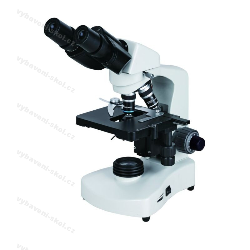 Binokulární mikroskop laboratorního typu se čtyřmi objektivy, křížovým stolem pro posun preparátu v osách X-Y a koaxiálním makro-mikro zaostřováním. Revolverová hlavice pro objektivy je pro pohodlnější vkládání preparátů vzad otočená. Jasné LED osvětlení s plynulou regulací a výškově nastavitelný kondenzor umožňují získat kvalitní obraz pro pozorování mikroskopických preparátů. Ve výbavě jsou kromě klasických okulárů WF 10x také okuláry WF 16x, se kterými lze dosáhnout i dalších zvětšení mimo standard.