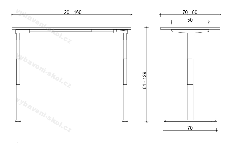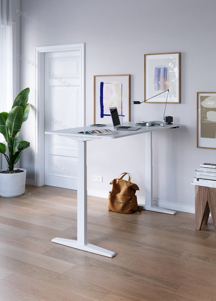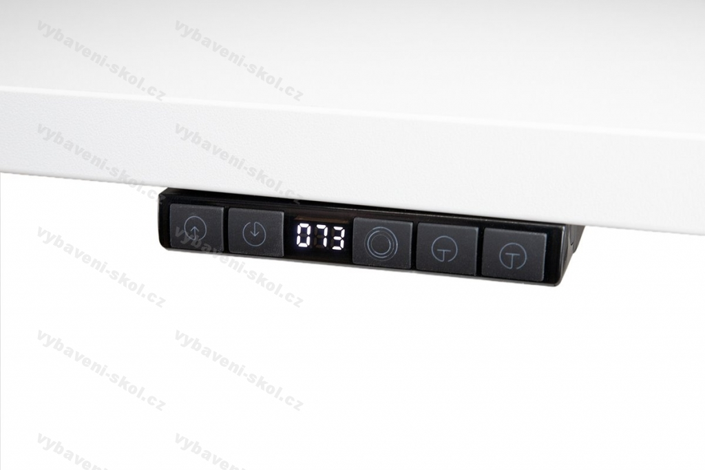 Výškově nastavitelný stůl s elektrickým dvoumotorovým pohonem, třístupňový zdvihací mechanismus. Velmi stabilní a robustní rám se zesíleným lubem a středovou fixací k desce. Výška podnoží: 615-1265 mm. Celková výška stolu: 640-1290 mm. Rychlost nastavení: 35 mm/s. Rozpětí šířky podnoží: 1100-1500 m, pro stolové desky o šíři 1200-1600 mm. Nohy ve tvaru T, široké kluzáky s rektifikací pro vyrovnání nerovností podlahy 0-10 mm. Tlačítkové ovládání: nahoru/dolů, pamět pro spodní a horní pozici, funkce HSM, proudová ochrana + antikolizní funkce, hlučnost 48 dB.