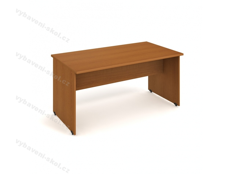 Obdélníkový tvar pracovní desky jednacího stolu Gate GJ 1600 je velice praktický. Stůl je vyroben z laminované dřevotřísky. Pracovní deska je silná 25 mm (ostatní prvky stolu silné 18 mm), osazena ochrannou hranou ABS o síle 2 mm. Hranou ABS jsou osazeny také vnější a vnitřní strany nohou stolu. Nohy stolu opatřeny výškově stavitelnou rektifikací, která umožňuje dorovnat nerovnosti podlah až o 1,5 cm a zajistit tak vodorovnost pracovní plochy za každých okolností. Prostřednictvím jednoduchého spojovacího systému (automaticky součástí každého prvku) lze stůl kombinovat s jinými nábytkovými prvky. Dekor dřeva lze vybrat v níže uvedeném vzorníku. Tento typ stolu je BEZ průchodky pro kabeláž.