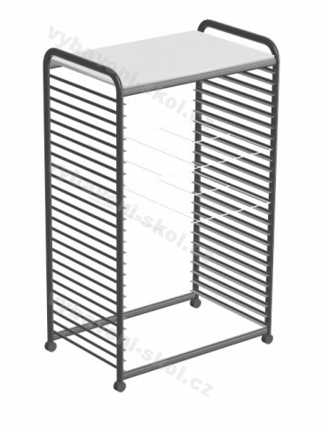Konstrukce pojízdného odkládacího stojanu je svařena z kovových profilů. Povrchová úprava kovu je provedena práškovou vypalovanou barvou. Součástí stojanu jsou brzděná zátěžová kolečka. Ve stojanu jsou vložena jednotlivá drátěná síta, na která se pokládají výkresy.