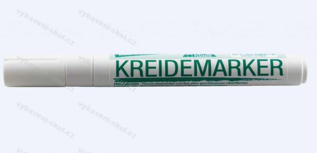 Popisovače s náplní tekuté křídy. Sada 4 kusů - barva bílá. Bezprašné a snadno stíratelné. Kulatý hrot 2 - 5 mm. Zdravotně nezávadné, vhodné i pro alergiky a astmatiky. Určeno k popisování všech hladkých neporézních povrchů, např. zelené, modré i černé keramické a emailové tabule, interaktivní tabule, plastové, fóliované, porcelánové, keramické, zrcadlové nebo skleněné povrchy. Možnost použití v kružítkách typu Precizion, Dynamic nebo Magnat. Zdravotní nezávadnost podle norem CE a EN 71-3. 100% ekologický výrobek.