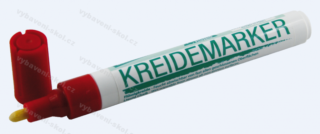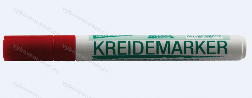 Popisovače s náplní tekuté křídy. Sada 4 kusů - barva červená. Bezprašné a snadno stíratelné. Kulatý hrot 2 - 5 mm. Zdravotně nezávadné, vhodné i pro alergiky a astmatiky. Určeno k popisování všech hladkých neporézních povrchů, např. zelené, modré, bílé i černé keramické a emailové tabule, interaktivní tabule, plastové, fóliované, porcelánové, keramické, zrcadlové nebo skleněné povrchy. Možnost použití v kružítkách typu Precizion, Dynamic nebo Magnat. Zdravotní nezávadnost podle norem CE a EN 71-3. 100% ekologický výrobek.