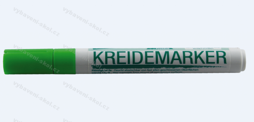 Popisovače s náplní tekuté křídy. Sada 4 kusů - barva neonová zelená. Bezprašné a snadno stíratelné. Kulatý hrot 2 - 5 mm. Zdravotně nezávadné, vhodné i pro alergiky a astmatiky. Určeno k popisování všech hladkých neporézních povrchů, např. zelené, modré, černé i bílé keramické a emailové tabule, interaktivní tabule, plastové, fóliované, porcelánové, keramické, zrcadlové nebo skleněné povrchy. Možnost použití v kružítkách typu Precizion, Dynamic nebo Magnat. Zdravotní nezávadnost podle norem CE a EN 71-3. 100% ekologický výrobek.