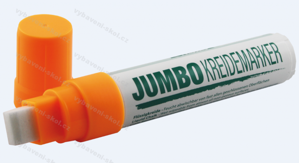 Popisovač s náplní tekuté křídy. 1 kus - barva neonová oranžová. Bezprašné a snadno za sucha stíratelné. Plochý hrot 5 - 15 mm. Zdravotně nezávadné, vhodné i pro alergiky a astmatiky. Určeno k popisování všech hladkých neporézních povrchů, např. zelené, modré, bílé i černé keramické a emailové tabule, interaktivní tabule, plastové, fóliované, porcelánové, keramické, zrcadlové nebo skleněné povrchy. Zdravotní nezávadnost podle norem CE a EN 71-3. 100% ekologický výrobek.