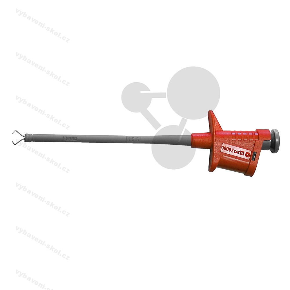 Testovací hrot se svorkou, červený.