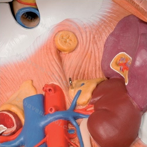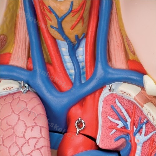 Bezpohlavní torzo rozložitelné. Dvoudílné hlava, plíce, srdce. Žaludek, játra se žlučníkem, dvoudílný trávicí trakt, přední polovina ledviny. Ruční výroba. Kvalita 3B Scientific.
